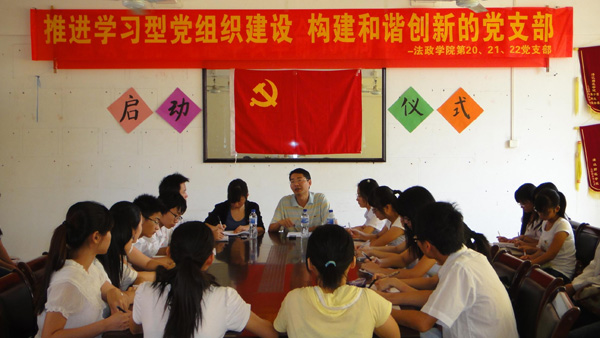 湛师新闻网10月18日讯 昨天,法政学院第二十、二十一、二十二学生党支部在弘雷楼会议室举行了题为“推进学习型党组织建设,构建和谐创新的党支部”的学习型党组织建设系列活动启动仪式。法政学院党委全柱副书记、辅导员陈琳琳老师及全体党员、预备党员出席了本次启动仪式。