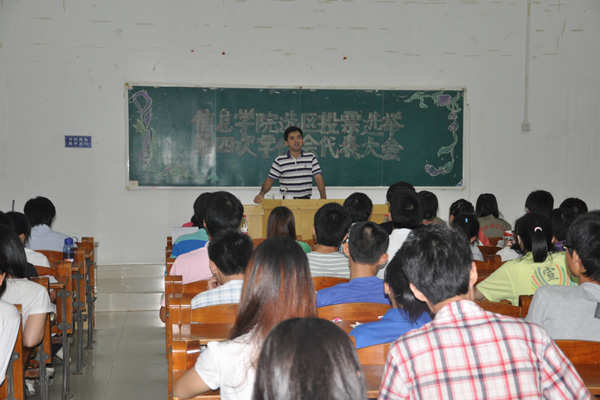湛师新闻网10月18日讯 为了更好的维护学生的利益, 10月15日晚,信息学院在弘雷楼107室举行我校第五届学代会之信息学院选区选举学生代表大会。出席本次会议的有信息学院党委副书记林荣新、岳喜凤老师、校学生会部分干部、信息学院学生干部、各班班长及代表。会议由岳喜凤老师主持。