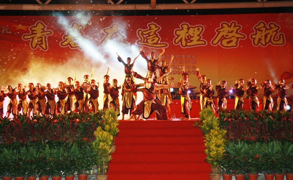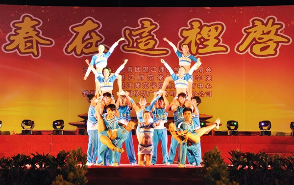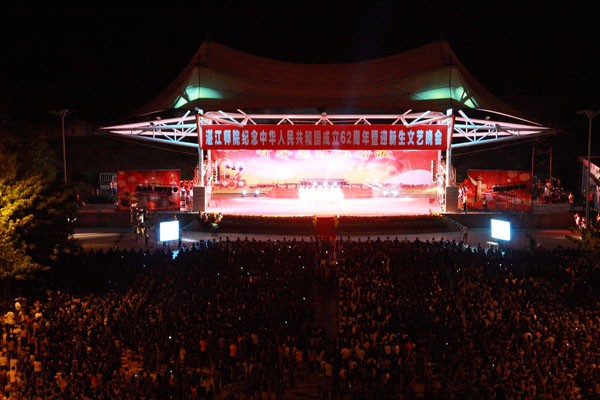 湛师新闻网10月13日讯 昨晚,湛江师范学院2011年庆国庆暨迎新生文艺晚会在我校雷阳广场隆重举行。晚会由校团委、音乐学院、博雅教育中心联合主办,晚会上,师生们用飞扬的歌声赞扬伟大祖国的繁荣昌盛,祝福伟大祖国更加富强,用翩跹的舞姿展示出湛师学子们积极向上、青春激昂的精神风貌和品质,焕发新生对大学美好生活的憧憬。