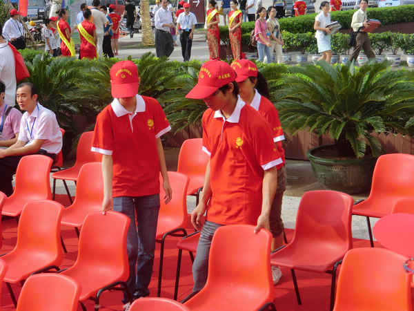 10月2日上午9时是博览会正式开幕时间,为了以饱满的激情,认真的态度圆满完成此次志愿服务活动,志愿者们在校青年志愿者联合会干部的统一指挥下提前准备,积极参与。早上7点多钟他们就已有序到达开幕式会场,协助工作人员布置会场并负责维持会场秩序,热情地引导市民入场就座。