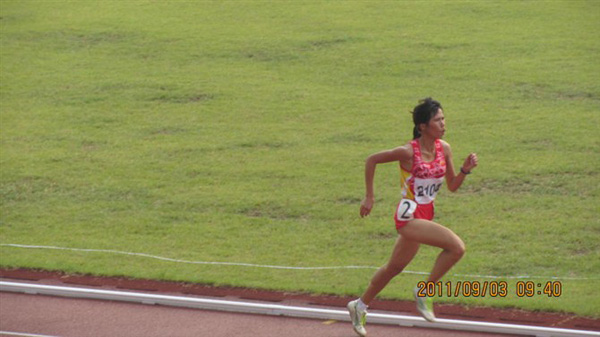 炎炎夏日,在火辣激情的大运会运动赛场上,摄影师抓拍了一个镜头——一个娇小可爱的女生有节奏地为1500米比赛拼搏着,她专注于自己的方向上,完全没有顾虑其他对手在距离不远的跑道上激烈地竞争着。朝阳透过树梢,温暖激励着每一位运动员。她朝着终点奋力冲过去,获得了广东省第八届大学生运动会女子乙组1500米亚军,为我校扬起第一枚奖牌风帆。盛夏赛事,激情尽在大运中,她就是08体教1班吴建梅同学。