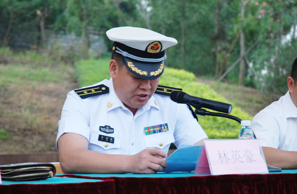 接着,91487部队副大队长林英豪讲话。他希望同学们能通过军训,向军人学习:一是学习军人站如松、坐如钟、行如风的队列养成,直线加方块的生活习惯,美观大方的军容仪表等基本素质;二是学习军人雷厉风行、令行禁止的谨慎作风;三是学习军人战斗、拼搏、奉献的精神。