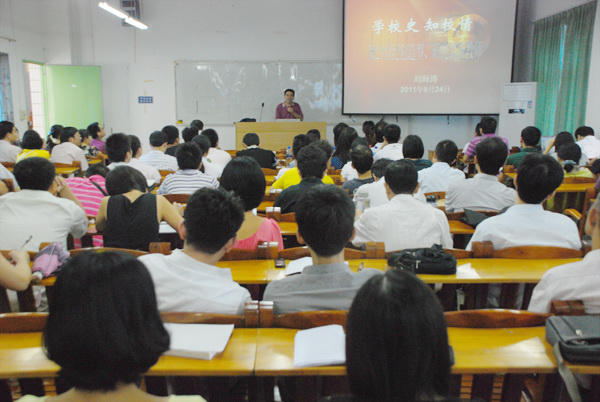 湛师新闻网9月28日讯 9月24日,由我校人事处组织的新教职工入职培训拉开了序幕,我校109名新入职的教职工参加了培训,校党委副书记刘海涛教授出席了开班仪式,并作了重要讲话。