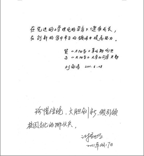 《太阳谷》此期的封面淡雅大方,古香古色,文艺气息浓厚。社刊内有太阳谷文学社名誉社长刘海涛教授(校党委副书记),人文院党委书记谢应明、副书记冯基聪,宋立民教授的题词。社刊由人文院史习斌博士作刊首语,并收录了张德明教授的作品,可谓名师闪耀。
