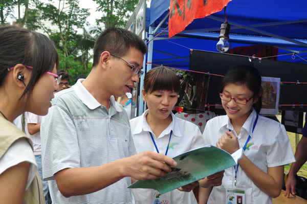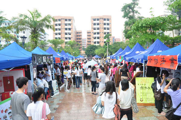 社团风景线展演活动首先进行社团的招新宣传。我校35个校级社团通过张贴海报、派发传单、陈设作品、现场人员讲解等多种方式对该社团进行宣传,现场吸引来了三千多名学生报名,各社团爱好者们虚心询问,社团理事们耐心解答,现场气氛热烈,其乐融融。。