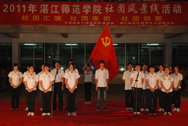 湛师新闻网9月27日讯 开启新生活,汇聚新活力,爆发新能量,登上新舞台。24日晚上,由校团委、社联会共同举办的社团风景线展演活动在体育馆前隆重举行。校团委李发武副书记和各社团指导老师出席了本次活动,同时参加活动的还有海洋大学寸金学院的学生干部、我校社联会全体学生干部以及各大社团干部。