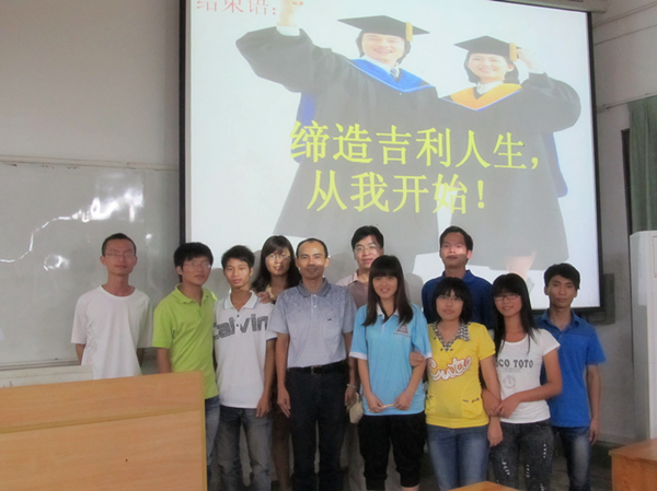 湛师新闻网9月25日讯 9月23日晚,由教务处主办、物理学院承办的职业素养讲座在榕芳楼201教室举行,湛江汇成洋实业公司李小权经理作题为《人企合一,事业吉利》的专题讲座,物理院机电系主任弓满锋老师,辅导员郭莉敏老师和各级学生代表出席讲座。