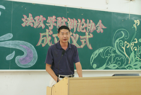 接着,全柱副书记为仪式致开幕词中,宣布法政学院辩论协会正式成立。在致辞中,他表示法政院辩论队取得卓越了成绩,在八年的风雨历程中成长壮大成今日的辩论协会,已成为法政学院的一个品牌。辩论协会作为一个将辩论队朝卓越规模化发展的平台,旨在“弘扬语言艺术,丰富校园文化”,提高院学生口才和思辨能力。接着,全副书记还表示,协会的发展任重而道远,应该做到:找准方向,积极进取,开拓创新、展现专业特色。同时,学生社团要发挥中间作用,积极扶持,保持其优秀与辉煌。