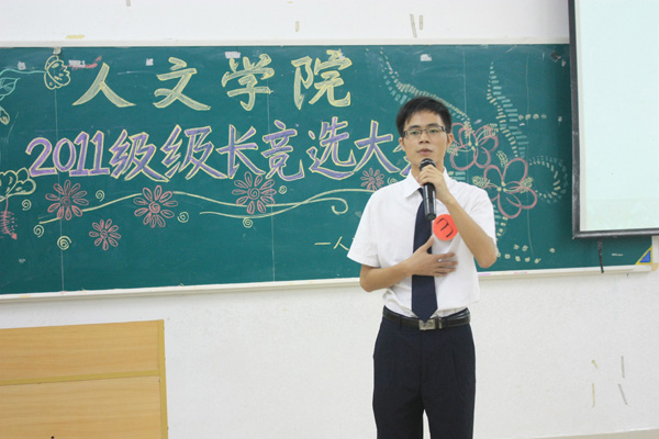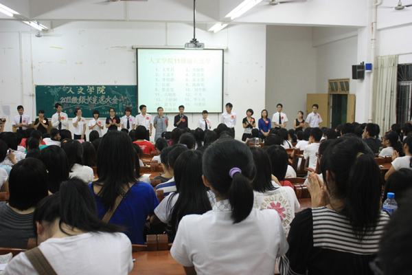 湛师新闻网9月24日讯 昨晚,人文学院学生联合会在弘雷楼511教室举行了11级级长竞选大会。人文学院党委谢应明书记、辅导员张家波老师出席了竞选大会。