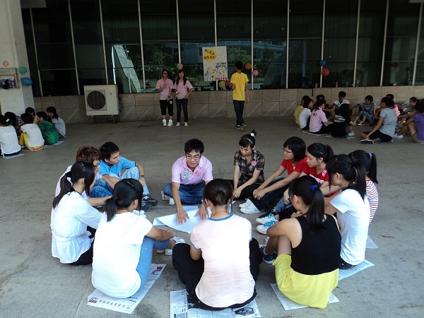 活动过程中,同学们分别进行了“解绳索”、“大风吹”、“生日快乐”、“巧钻呼啦圈”等游戏,游戏促进了同班同学的相互了解,以及让同学们思考了日常交流缺失的原因。接着,同学们又分成各小组并确定组长、组名和小组口号等,以小组竞赛的形式进行了“珠行万里”、“诺亚方舟”、“坐大牌”等游戏,小组成员之间相互认识,打破陌生气氛,进一步促进了小组之间的相互交流,加强了成员之间的合作,发扬了团结合作精神。