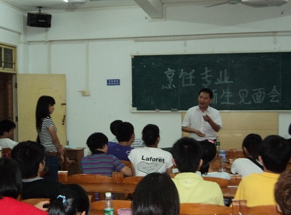 湛师新闻网9月22日讯 昨晚,生命科学与技术学院2011级烹饪与营养教育专业在弘雷楼601室举行专业介绍会暨新生交流会。该院陈道海书记、赖小玲系主任、11烹饪班主任李锐老师、王宏副教授、黄亚芬老师、李洪亮老师、陈水科老师等出席了本次会议。