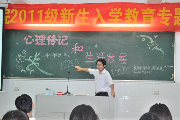 湛师新闻网9月21日讯 昨晚,教科院于燕雷楼604课室举行了以“心理传记与生涯发展”为主题的新生入学第四场教育专题讲座。该院副院长郑剑虹博士担任主讲,周仕德博士、贾晶老师出席了讲座。