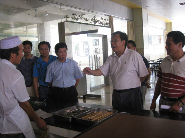 李永全副院长一行先后走访了学校鸿园食堂 、鸿园食堂清真餐厅、泽园食堂、鹏园食堂。李副院长每到一处,都仔细了解食堂的环境卫生、菜式品种以及目前售卖饭菜的价格,并与在食堂用餐的学生亲切交谈,详细询问学生近况,了解饭菜价格和对食堂服务的意见。学生普遍对目前的饭菜价格、菜式品种表示满意。