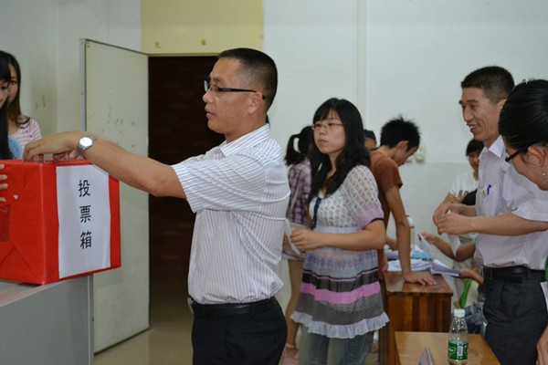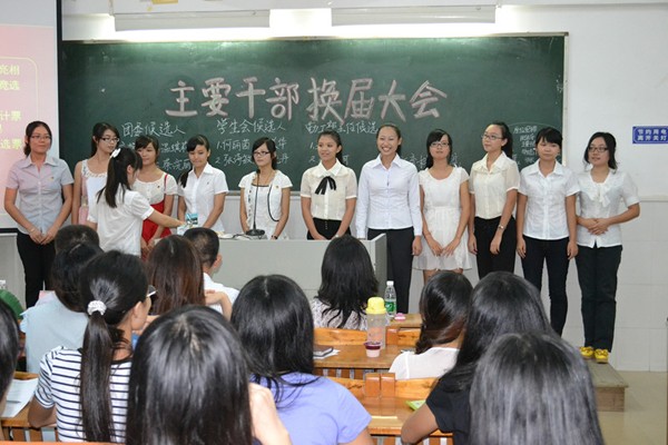 本次换届大会的竞选进行得十分激烈,在各个候选人纷纷上台竞选过后,现场的投票人根据投票顺序进行投票。然后即时进行计票,从而产生了新一代的主要干部:梁琳琳以54票的成绩当选院团委秘书长,何丽茵以71票的成绩当选院学生会主席,梁泓舸以38票的成绩当选了院勤工部主任。