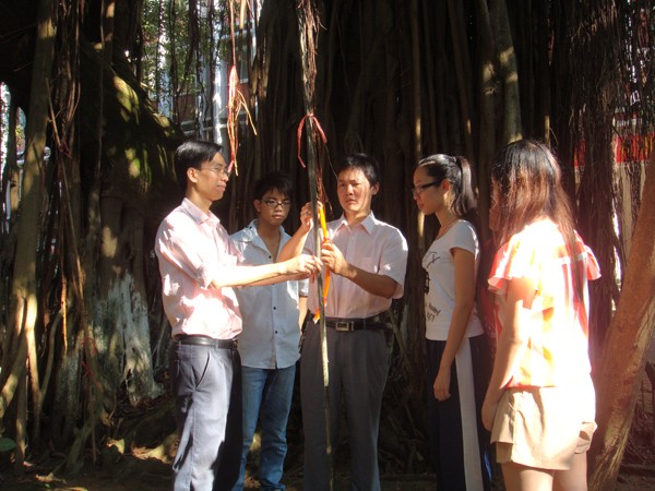 活动中,部分新生在老师和师兄师姐的指导下,对榕树气生根生长进行研究与保护。与此同时,新生们还精心设计了相关实验方案,并自制了一种简易导根装置和自制竹竿,通过比较研究不同浓度的多种激素以及不同处理方式对古榕树气生根生长的影响,以促进气生根快速生长。