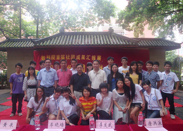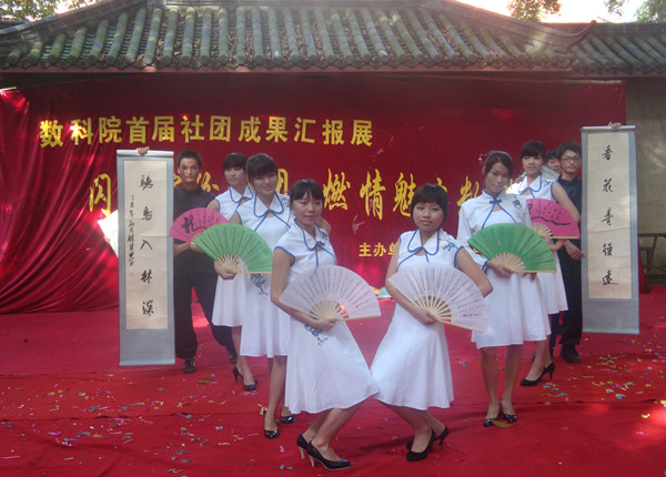 在校团委李发武副书记宣布“数科院社团成果汇报展暨自行车巡游仪式”下开始了成果汇报展。数科院各社团的表演中有来自英语俱乐部的英语话剧《Welcome the Freshmen》,学术科技部和建模协会合作的相声表演《PK》, 燕岭书法社的走秀书法展《笔墨神韵》,中数协会的话剧《相约中数》和电脑协会的《电脑组机PK战》。其中,在《电脑组机PK战》中,舞台上三位参赛者争分夺秒地竞赛组装电脑,现场气氛紧张激烈,各选手组装速度之快,使在场观众大开眼界,赢得了同学们的阵阵掌声。