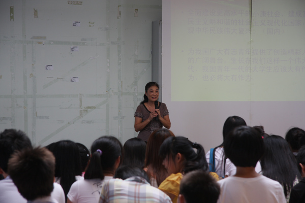 李爱群书记主讲“胸怀祖国,树立远大理想信念”讲座。她提到,当代的大学生应该树立崇高的理想信念,这就需要大家以大学新生活为起点,努力拼搏,廉洁自律。此外,针对新生团员如何积极向党组织靠拢,李书记详细介绍党的基本知识、入党流程等相关知识,并向新生传达了学校近期颁发的《湛江师范学院发展党员工作流程》等四个党建工作规章精神。随后,针对美术院女生比例大特点,李书记还主讲女生专题讲座,希望女生自尊、自强、自立、自爱,做新时代优秀的女大学生,李书记还列举古今中外杰出女性的成才经历,勉励大家志存高远、立志成才。新生们听得十分投入。