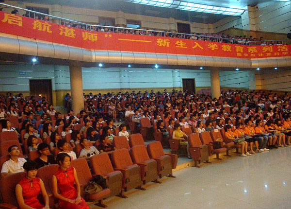 湛师新闻网9月16日讯 昨晚,数科院在音乐厅举行了2011级专业教育暨师生见面会。该院党委吴华明书记,院长李晓培,党委副书记唐洪浪,副院长谷秀川、陈历敏,刘小松、吴克俭教授,吴勇旗、邓圣福博士及2011级各班班主任和辅导员老师出席了本次会议。该院2011级全体新生和2009级全体插班生参加此次见面会。