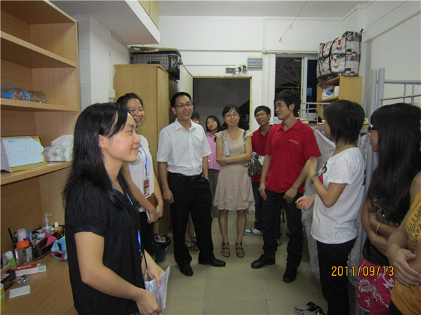 领导班子一行走进男女生宿舍,每到一个寝室,领导们都给予新生们亲切的问候,进一步了解新生们初到大学的心情,并询问了他们的生活和学习情况。同时,学院领导还耐心、详细地解答了新生们对宿舍的管理、学习和生活上的疑问,并特别强调了新生的安全问题,叮嘱他们要提高安全保卫意识。