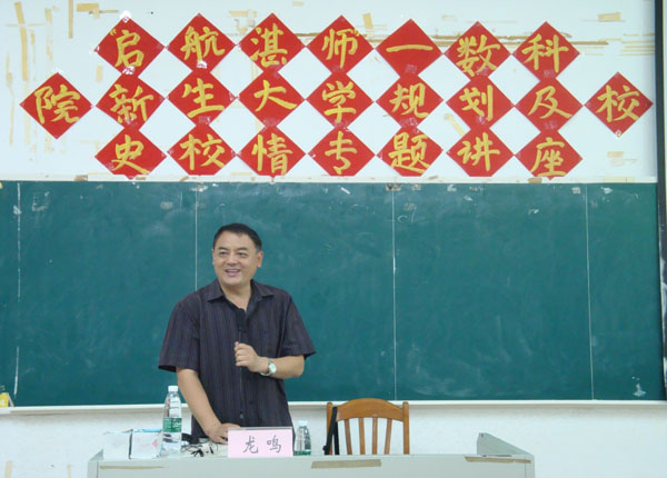湛师新闻网9月12日讯 启航湛师,学习校训精神,做好人生规划。昨晚,数科院于弘雷楼211教室举办了2011级新生入学系列教育之新生大学规划及校史校训专题讲座。思政部龙鸣教授、数科院辅导员全光华老师及该院全体2011级新生参加了本次讲座。讲座由龙鸣教授主讲。