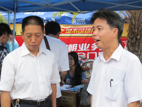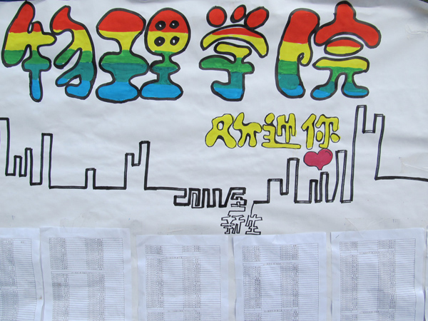迎新当天物理学院李忠院长、党委书记刘贵昂、吴万副书记来到了报到现场,欢迎2011级新生来校学习,视察各部门迎新工作,慰问迎新工作人员。该院辅导员老师也都到报到现场组织工作,给工作人员加油鼓气,使整个迎新过程都井井有条,达到了很好的效果。