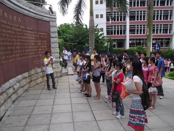在游园活动中,服务队将学校的景点与我校历史文化结合起来,将古榕广场、日晷、百年师范纪念塔、图书馆作为重点的讲解对象,使新生深切感受湛师浓厚的文化底蕴,而且今年也强调了游园讲解内容的实用性,服务队针对行政楼、教学楼,以及一些攸关新生利益的场所也做了重点介绍。在整个讲解过程中,服务队一直在新生中加强宣传和渗透我校“崇德、博雅、弘志、信勇”的校训。