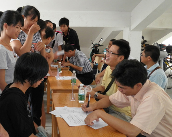 为了让新生更多的了解学校的缴费详细情况以及帮助一些贫困家庭了解关于国家贷款的情况,学校为学生们提供了“绿色通道”。今日上午,在化学院绿色通道处由钟明杰副书记和冯凌凌老师为新生解答问题。经过老师的解释说明,家长和学生对大学所要交的各种各样的费用有了一定的了解,也明白了各种费用的用途。另外,一些学生还询问了关于勤工助学的情况,钟副书记和冯老师告诉了学生一些学校设置的勤工助学岗位,并向学生阐述了通过面试获得勤工助学后所享受的待遇问题。