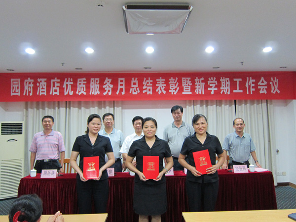 湛师新闻网9月8日讯 9月5日晚,园府酒店在该酒店三号会议室召开了优质服务月总结表彰暨新学期工作会议。学校李永全副院长、产业处冼冠强书记、程子建副处长和园府酒店全体员工出席了本次会议。