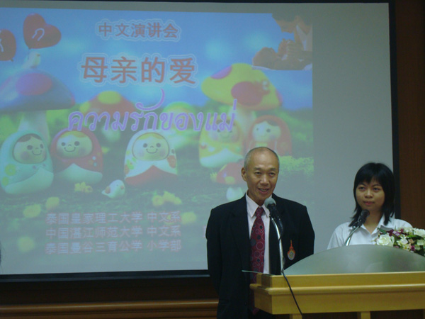 湛师新闻网9月6日讯 今天上午,我校赴泰交流学生参与泰国皇家理工大学举行的以“母亲的爱”为主题的演讲会。泰国皇家理工大学校区中文系老师及同学们出席了本次演讲会。此外,还邀请了泰国曼谷三育中学小学部的小学生作嘉宾发表演讲。