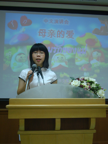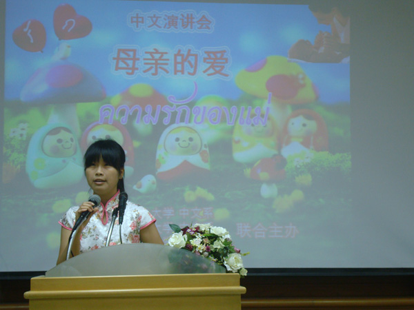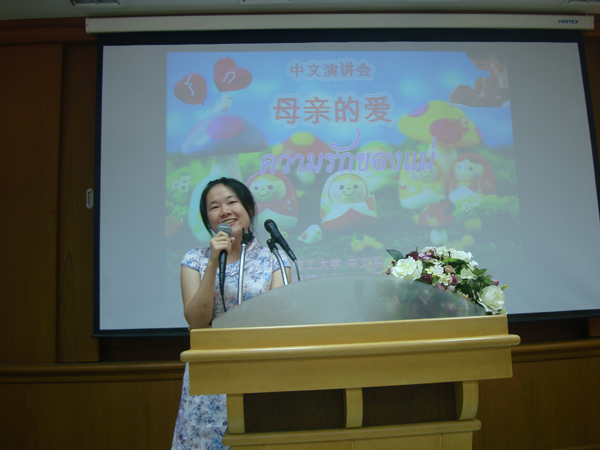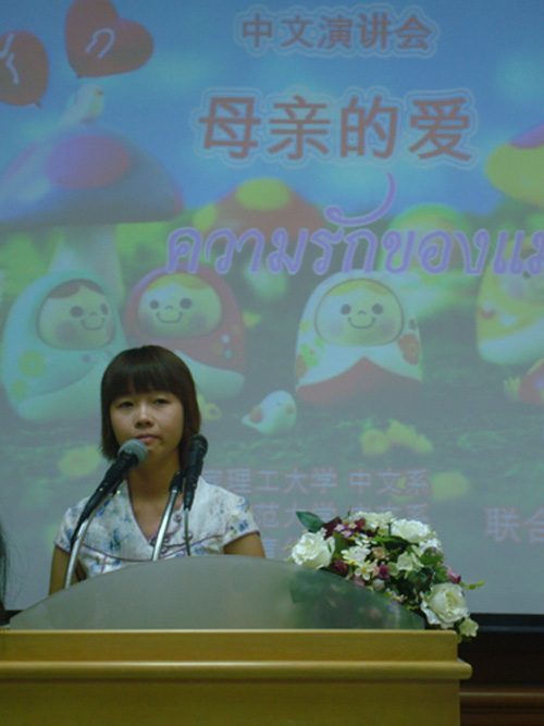 随后,赴泰交流学生们围绕“母亲的爱”这一主题,结合自身,从自己的母亲对自己的关爱等感人事迹方面出发,深情地歌颂伟大的母爱。动情之处,不禁泪泛双眼,真挚的感情牵动台下观众,尤其是远在异国的中国同学。