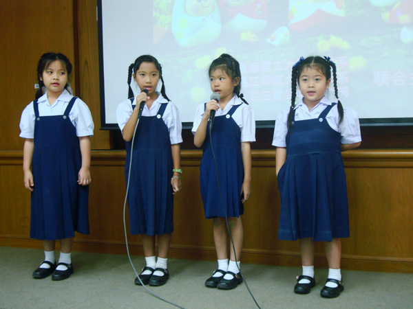 演讲会伊始,可爱的泰国小学生用其稚嫩的声音向交流生描述了她们心目中伟大母亲的形象,其认真的表情、细腻的感情流露赢来台下观众阵阵掌声。