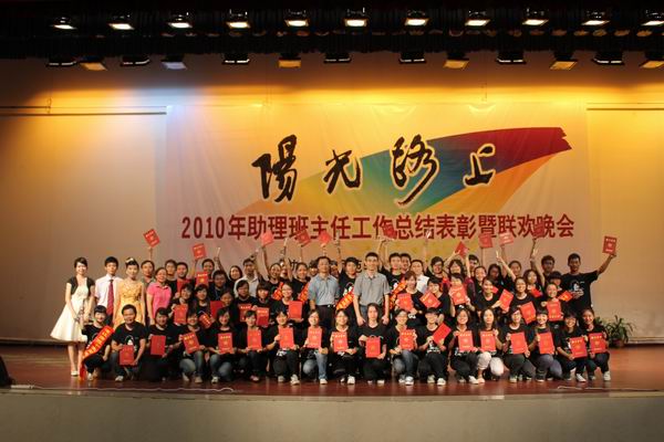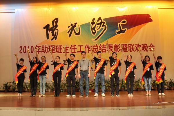 晚会向获得2010年助理班主任优秀工作案例、优秀助理班主任,十佳助理班主任等荣誉的助理班主任颁发了证书和奖杯。“十佳”助理班主任自拍的获奖感言成为晚会的一大亮点,视频中,“十佳”助班们各用独特的方式展现了自己的风采,并用幽默的语言表达了对助班工作的感想,真实表露,赢得全场阵阵雷鸣般的掌声,将晚会推上高潮。