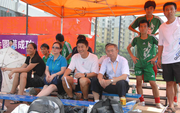 我校代表团团长、学校副院长刘周堂和体科院领导章晓霜、于宁、欧美珍督阵加油。
