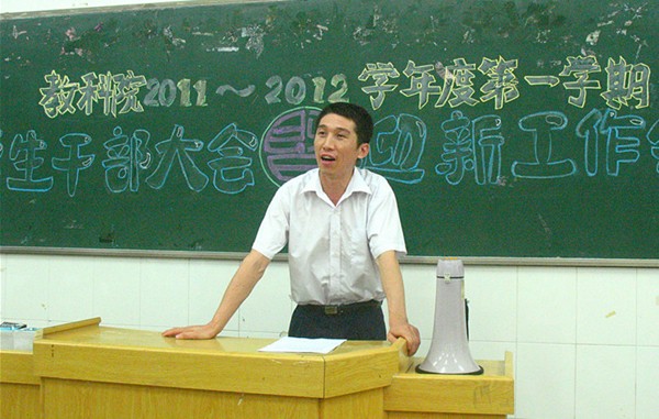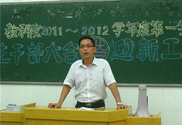 会议伊始,魏老师首先对教科院上一学年度的工作进行了总结,并对全体干部的工作给予了充分的肯定。他希望全体干部在新学年的到来之际,能够快速地投入到学习和工作中去,也希望能加强班长、团支书的培训,将重心转移到各个班级。