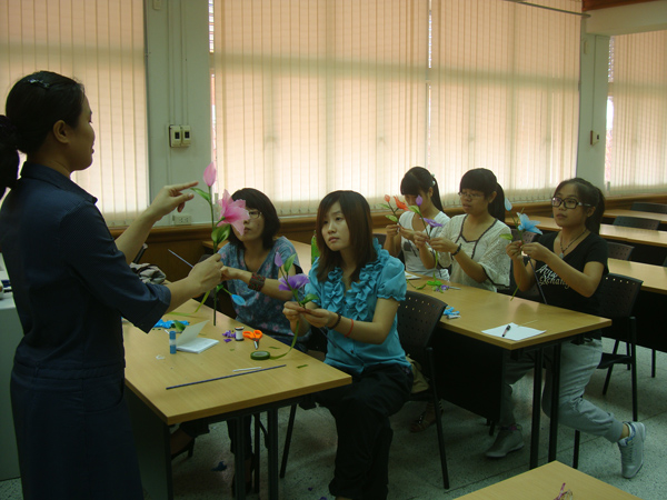 该校为我校赴泰交流学生开设了丰富多彩的课程,其中包括泰语会话课、泰国文化课、泰国舞蹈课、雕刻课及手工课。幽默风趣的泰国老师在泰语文化课上以多样的教学形式让同学们在轻松愉悦的教学氛围下学习泰国文化,在手工及雕刻课上老师们悉心指导同学们手工制作,让同学们从学习中感受泰国文化。