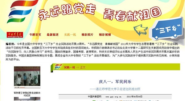 据悉,中国共青团和中国大学生在线网站都是国内重要的宣传网站。法政实践队能够在这些网站占有一席之地,是对该实践队的充分肯定。