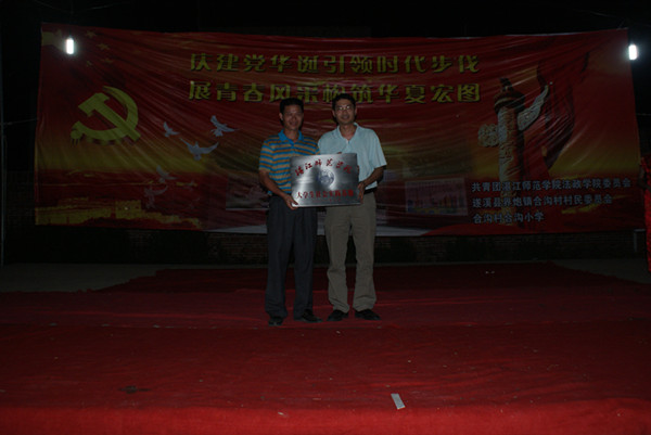 全柱副书记首先致辞中代表法政学院党委感谢北潭边防派出所、合沟村委、合沟小学对实践队的帮助,对实践队十一天的努力和成果给予了充分的肯定,同时对众多村民用自身例子现身说法教育的重要性,大声呼吁村民们一定要坚持让子女读好书,博得了村民的大声喝彩。