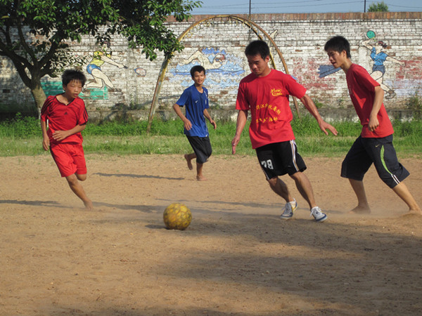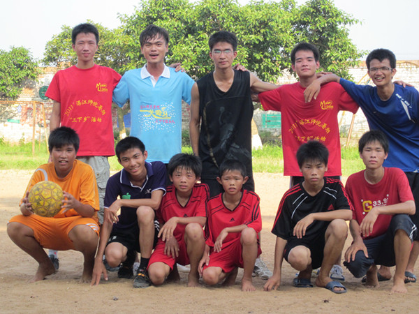 湛师新闻网7月26日讯 昨天下午,我校“关爱社”实践队在吴川市城东中学举行了一场别开生面的足球赛。