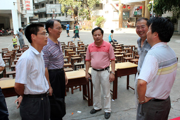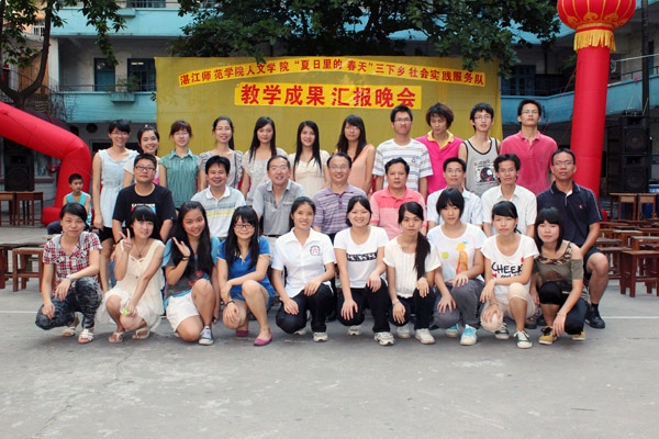 人文学院熊家良院长首先与梅岭小学覃校长见面,向其感谢了近日来对“夏日里的春天”实践队的悉心照顾。随后,熊院长等人了解了该实践队队员的住宿和用餐情况,并叮嘱队员们要做卫生和安全工作。冯基聪书记亲切问候了队员们,表扬了队员们吃苦耐劳的精神,他希望“夏日里的春天”实践队能够真正将春天的气息带给梅岭小学。