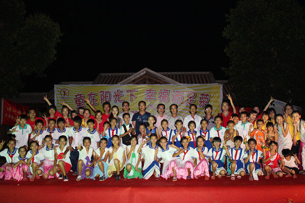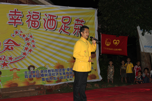 湛师新闻网7月25日讯 昨晚,教科院“幸福红领巾”实践队举行了以“童在阳光下 幸福洒足荣”为主题的文艺晚会。我校教科院党委郭和才副书记、雷州市委办公室黄智仁、雷州市团委办公室主任欧春霖、北和镇常务副镇长杜臣飞、北和镇中心小学常务副校长郭小才及足荣村村干部等出席了晚会。