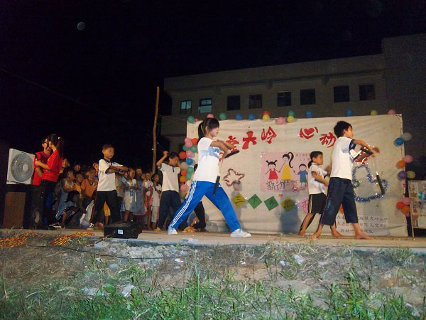 在正式演出前,大岭村朱松书记和两位学生代表分别上台致辞,他们都表示了对“新动一夏”实践队的感激之情和衷心的祝愿。本次文艺汇演内容丰富、形式各异,吸引了附近不少居民前来观看。由一二年级学生合唱的《唱支山歌给党听》正式拉开晚会的序幕。接着,舞蹈《马德里不可思议》、歌曲《遗失的美好》话剧表演双截棍等节目精彩呈现。来自麻蕾小学的两个小男孩也各自表演了一段街舞。嘉宾钟主任还当场演唱了两首劲歌,并配以热舞,把全场的气氛带到了高潮。
