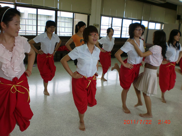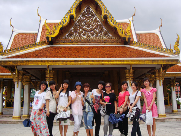 我校学生一抵达泰国就受到了泰国皇家理工大学老师及学生的热情招待,这一行12名女生在该校老师及同学们嘘寒问暖般的关心下,愉快地开始了第一个星期的泰国生活。在这一星期,她们学习了泰国舞蹈,参观了泰国著名佛寺金山寺、极具曼谷风情的“水上集市”、品尝了当地酸辣开胃的“冬阴功”汤等。