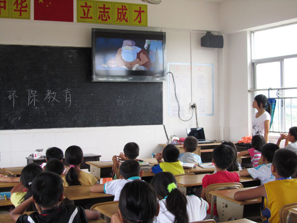 在课堂上,支教队员首先给学生讲解了目前世界环境的严峻形势,让他们认识到环保的重要性和必要性,让他们在日常生活中让呈良好的生活习惯,从小事做起,为保护地球家园贡献自己的力量。接着,支教队员让学生学习垃圾分类及回收的知识,掌握环保小常识,在生活中注重废品的回收循环利用。最后,队员老师和学生一起观看了具有环保教育意义的电影,让学生们在电影中得到教育和启发,小学生们都看得很认真专注。在电影放映完毕后,学生们还向老师谈了自己的观后感,他们都说,地球母亲受到的伤害和污染很大,他们会在日常生活中处处注意环保,为绿化美化地球家园做出自己的努力。整个环保教育课堂氛围活跃而轻松,同时也多了几分严肃的深沉和反思。
