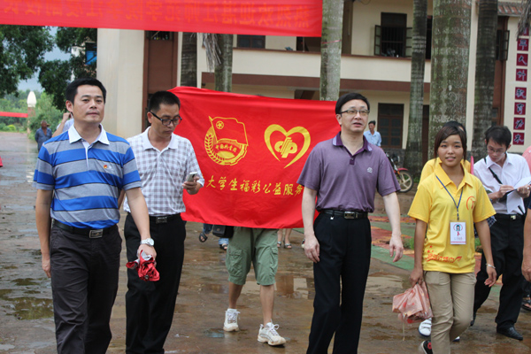 湛师新闻网7月21日讯 7月17日,我校李江凌副院长、校团委李粤书记、李发武副书记在教科院党委郭和才副书记、许占权副院长,外语院党委冯彩连副书记、法政院党委全柱副书记、音乐学院党委黄增副书记等领导的陪同下,冒雨察看了开展社会实践活动的队员们。