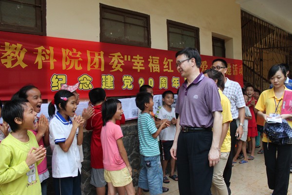 关爱空巢促和谐,帮扶成长荡幸福。李江凌副院长一行首先来到了龙门镇足荣小学,受到了足荣村民和足荣小学领导老师的热烈欢迎。李副院长一行参观了由教科院“红领巾”实践队举办的建党90周年朗诵宣讲、宣传图案片展览、“魅力汉语普通话形象大使选拔赛”,等活动。随后,李副院长受邀参加了教学技能经验传授座谈会。在会上,李副院长表示,希望通过大学生“三下乡”支教活动,传播我们湛师教书育人的文化内涵,还希望通过大学生“三下乡”社会实践活动,为当地小学送上更先进的教育理念和更科学的教学方法,推动足荣小学的教学改革创新,提高足荣小学的育人水平。李江凌副院长还重申了“公益福彩”活动的意义所在,并感谢足荣小学为该实践队提供了一次实践学习的机会,肯各项工作的开展情况,并希望队员要秉承师范教育的传统,虚心向老师讨教,继续学习,坚持实践,真正做到“幸福红领巾”,为足荣小学的教育发展奉献自己的绵薄之力,为自身的成才打造平台,稳固基础,提升志愿服务质量与个人技能素质。团委李粤书记则勉励实践队员克服困难,让学生在短短十天的实践中切实感觉到有所收获,有所提高。