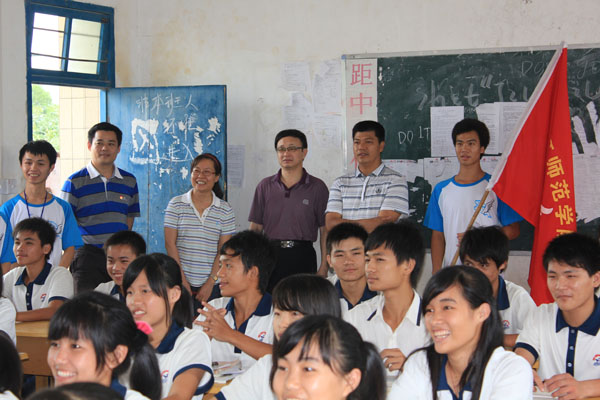 随后,李江凌副院长一行来到外国语学院大学生暑期“三下乡”“梦翔实践队”所在地的白沙第二中学,前去教师休息室、学生宿舍、学生备课教室等地方进行了察看。李江凌副院长一行还走进正在上课的教室仔细聆听,随后对课堂中存在的问题提出了建议。李江凌副院长要求实践队员在讲课中改进传统的授课方式,按照新课程标准的要求,调整教学方法,转变思维方式,把注重老师的讲授到注重学生的自我学习转变,充分调动学生学习的积极性。李江凌副院长一行最后还与白沙第二中学领导老师进行了亲切的交谈。