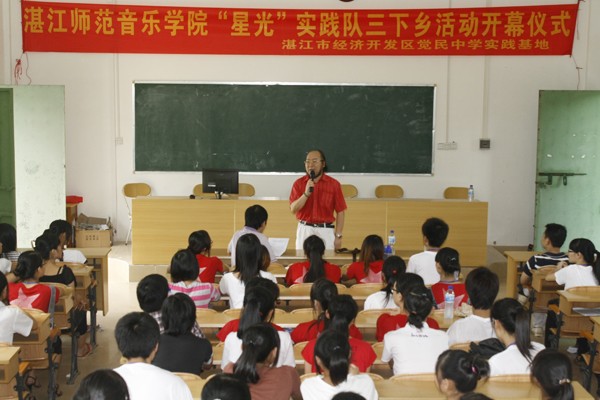湛师新闻网7月20日讯 昨天下午,音乐学院刘福瑞院长,黄增副书记,李均凤老师,郭成龙老师来到了湛江市经济技术开发区觉民中学慰问星光实践队队员和觉民中学的学生们,以及对该队下乡活动进行指导工作。