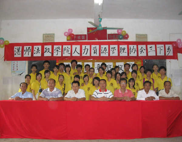 8点,开班仪式正式开始,先由杨水河副镇长致开幕词。杨副镇长回顾了去年该镇的三下乡社会实践情况,指出,大学生在奉献的同时,也收获经验,能力得到了锻炼。他表示,人力协会的三下乡社会实践队开展的各项活动的效果是明显的,是值得肯定的。他还勉励实践队的全体队员要继续发扬奉献精神,争取在这次实践活动中收获更多。接着,社山村村民委员会主任林太平、社山小学校长易腾飞等领导发表讲话,他们纷纷表示对湛师人力协会实践队的工作表示肯定,校长易腾飞还寄语全体学生要继续发扬勤奋好学的优良学风,争取从支教老师身上学到更多知识。最后,杨水河副镇长宣布支教活动正式开班。