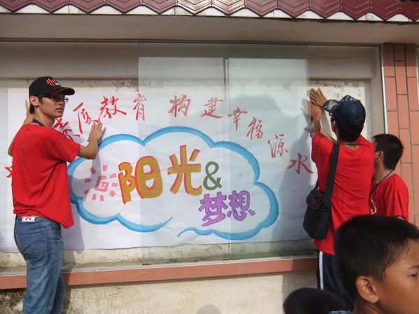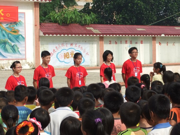 当队员把 “阳光,梦想”的宣传海报贴在宣传栏时,一大群孩子围了过来,大声地读着“推进素质教育,构建幸福源水”,看着一双双期盼的眼神,队员们的心更加坚定,要做出自己最大的贡献。9点整,开学典礼正式开始,小学生们排着整齐的队伍来到升旗台前,首先是源水小学的领导给孩子们说明这次活动的意义,希望孩子们能在新老师的带领下学习到更多的知识。接着是带队老师发言,感谢源水小学给该实践队机会,让大家播下希望的种子,也嘱咐队员们要全心全意为源水小学服务。最后是支教老师的亮相,精彩的自我介绍引来了孩子们的欢声笑语。