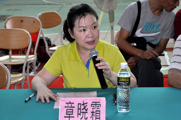 汇演开始之际,章晓霜院长致词。她指出,近年来,在体科院领导班子的正确领导下,全体科院教师的共同努力下,我校群众体育活动和全民健身活动取得了令人可喜的成绩:2005年,我校被国家体育总局授予“全国群众体育先进单位”;2010年,我校以98分全国排名第三,广东排名第一的优异成绩荣获全国百所高校“阳光长跑·祖国万里行”冬季长跑活动的最佳组织奖。2010年,大学体育课程被评为 “校级精品课程”。今天,即将举行的大学体育课程教学成果汇演,又是在学校举行教育思想大讨论、开展创先争优活动、建党90周年华诞的大背景下举行的,这是公共体育部响应学校号召和落实学校有关文件精神的一次具体行动,必将在公共体育部乃至体科院掀起教学改革思想大讨论的新浪潮,必将推动公共体育部全体教师以争创优质课堂为抓手,促进教学改革的深化。